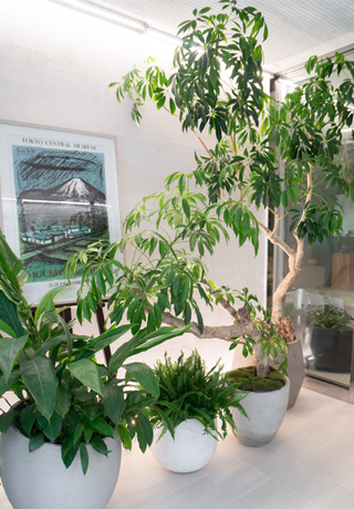 商業空間やオフィスといった人々が集う場に、植物や自然素材を用いた 環境演出 をご提案しています。