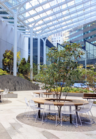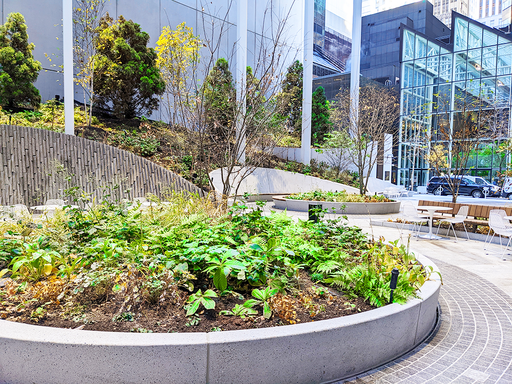 マンハッタンのセントラルパーク近くに位置するオフィス街に2022年にオープンしたパブリックスペース。