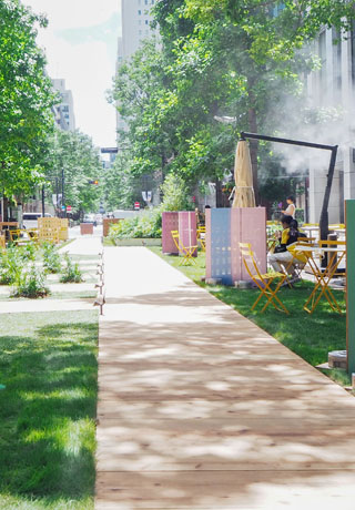 丸の内仲通の3ブロックに緑豊かな公園空間を創出し、通りの役割や季節ごとの可変生、多様化するライフスタイルへの適応を検証する社会実験プロジェクトで植栽を担当させていただきました。