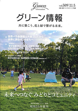2024年5月1日発行グリーン情報5月号にて、2月に東京ビッグサイトで開催されたグリーンインフラ産業展2024に植物発電ボタニカルライトを展示した際の取材記事が掲載されました。