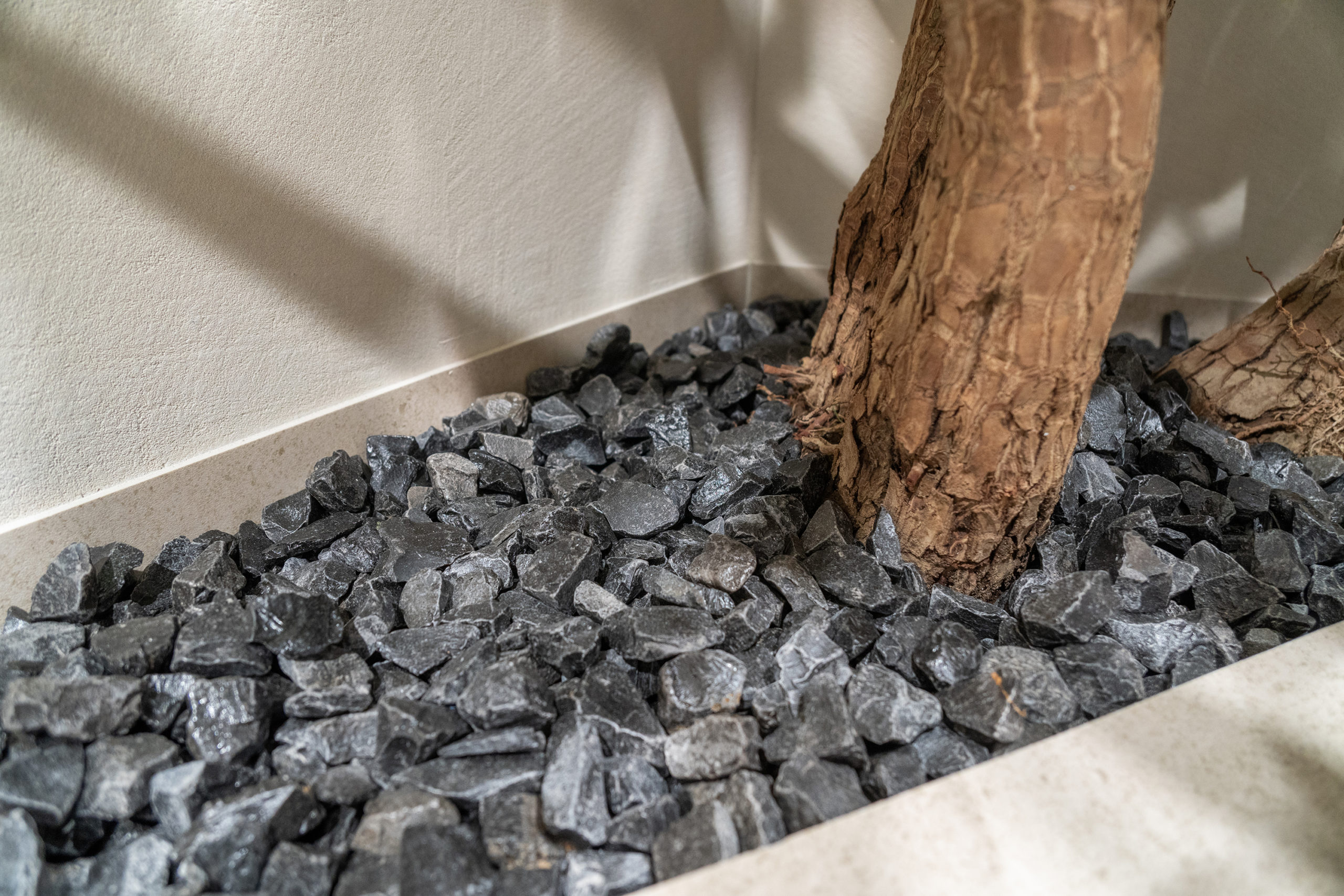 外と中の繋がりを持たせるため、植栽の雰囲気、マルチング(内鉢を隠す化粧材)を統一させました。