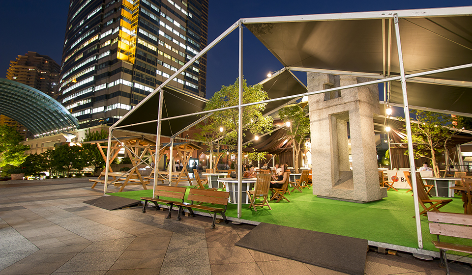 恵比寿ガーデンプレイスの時計広場に夏の期間だけのBARと、ショートフィルムシアターと、図書館が楽しめる大人の知的好奇心をくすぐるスポットが出現。