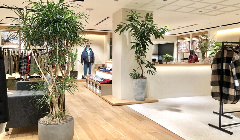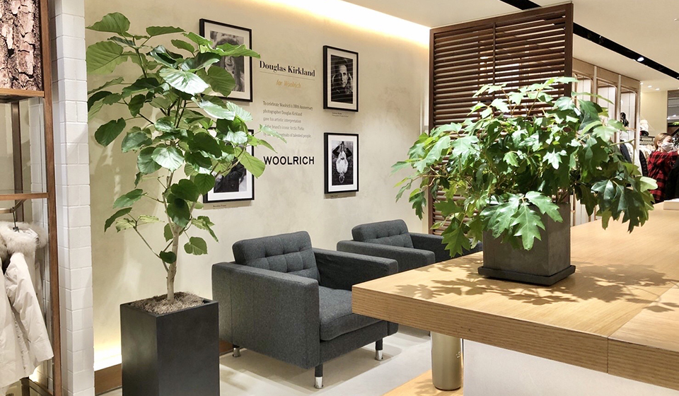 2020年10月1日にオープンしたWOOLRICH 玉川高島屋店の店内植栽を納品いたしました。