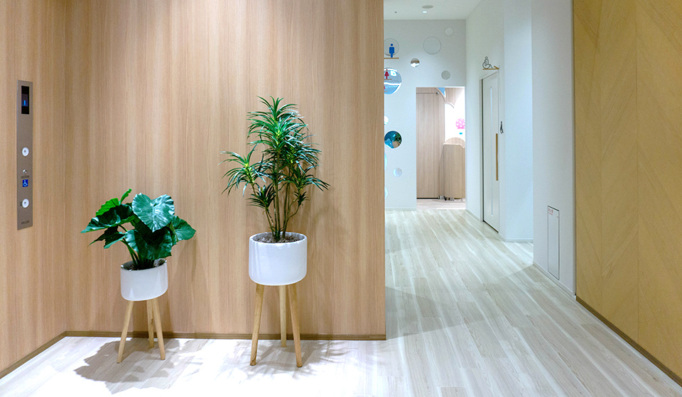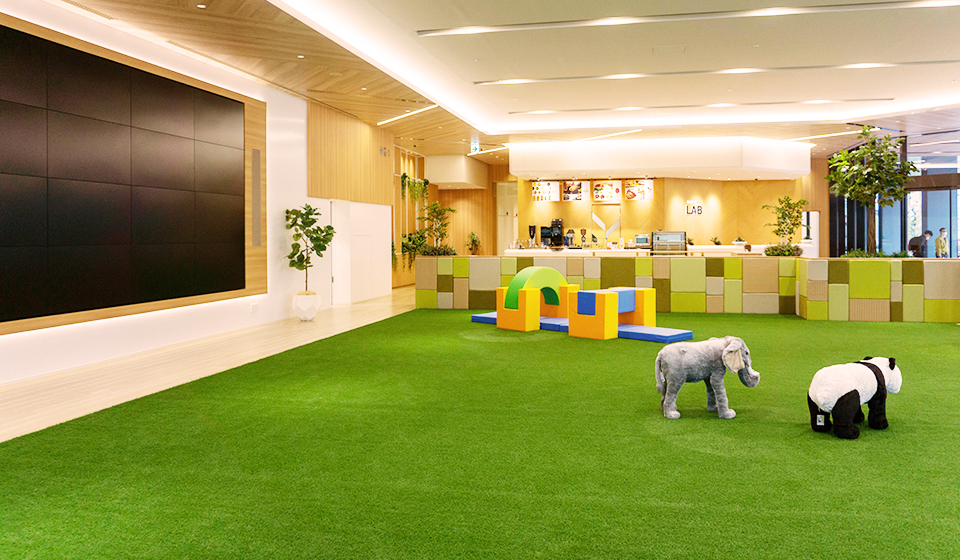 1階はカフェスペースやキッズスペースにあわせてカジュアルな雰囲気の造木を使用。