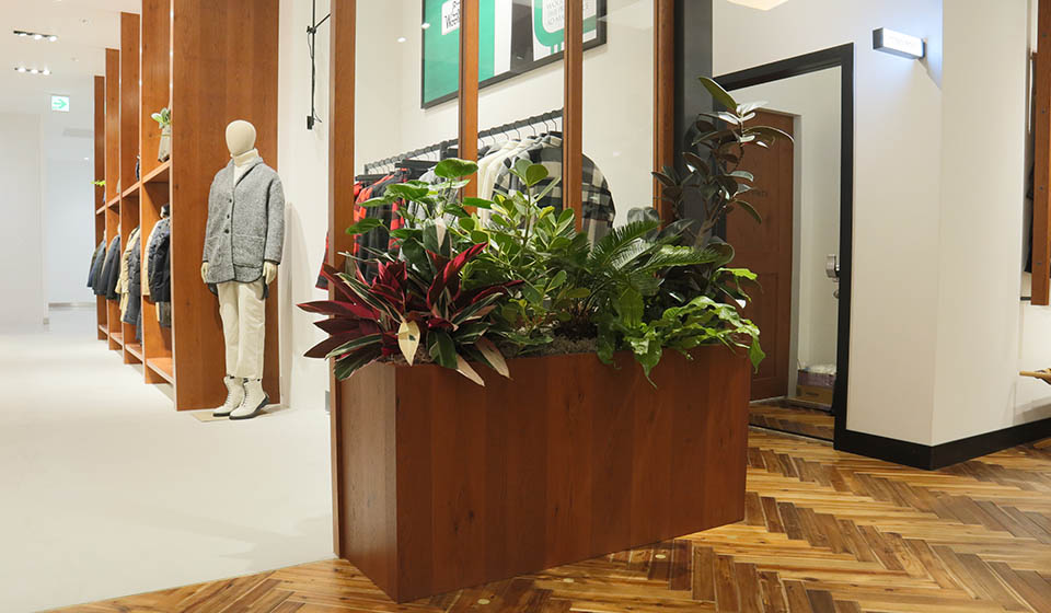 2020年11月にオープンした心斎橋PARCO内のWOOLRICH(ウールリッチ)の店内植栽を納品させていただきました。