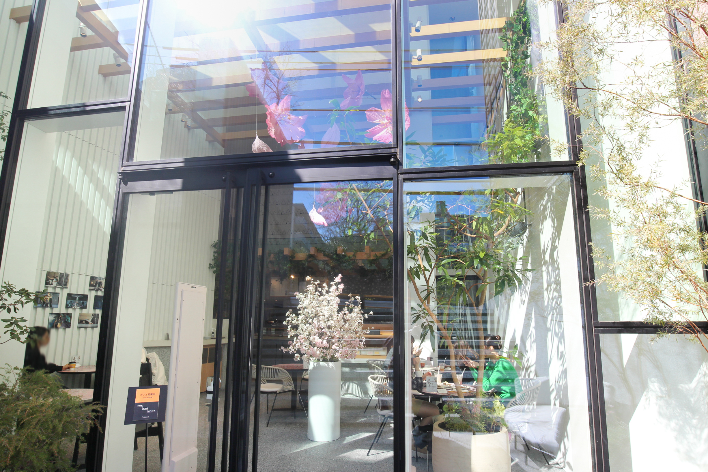 入り口正面は、可愛らしい色合いの桜のアレンジで空間を華やかに彩ります。