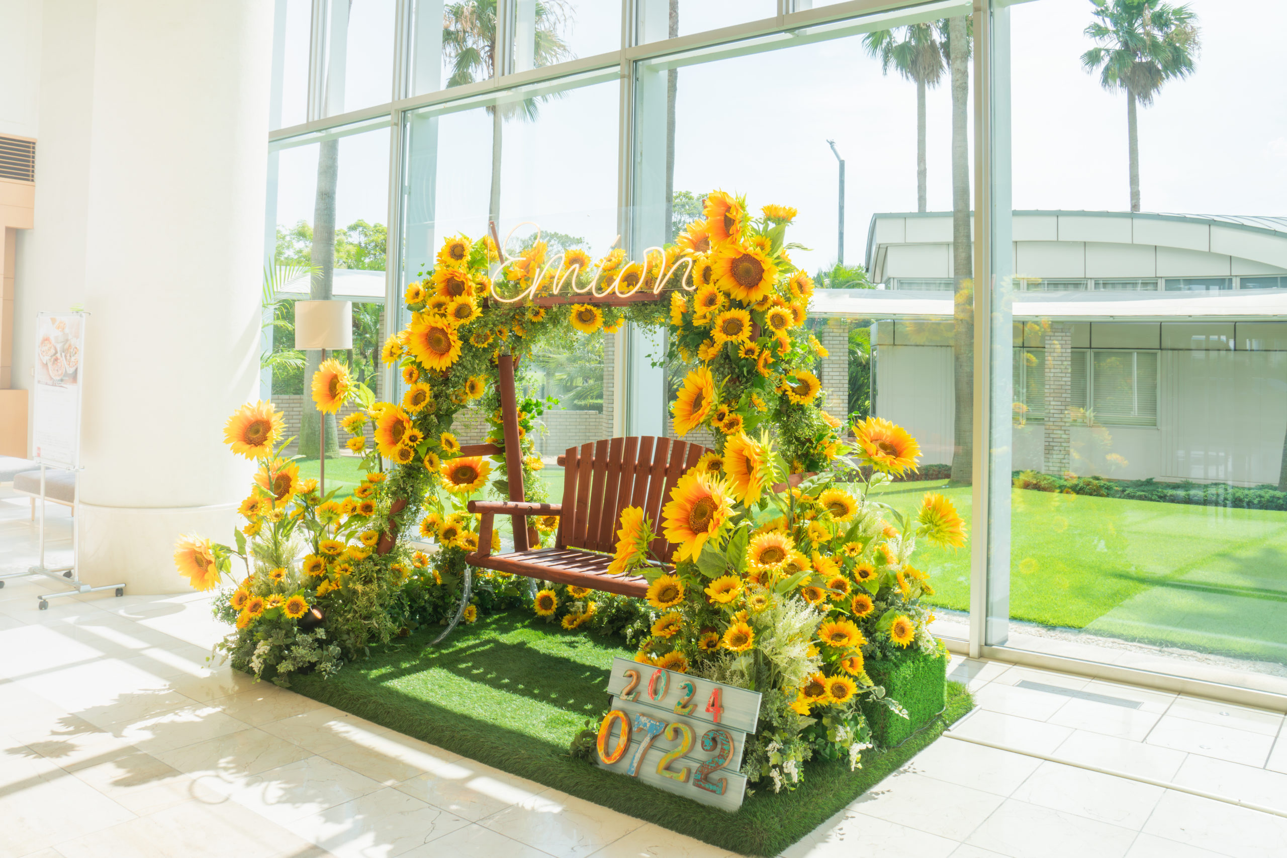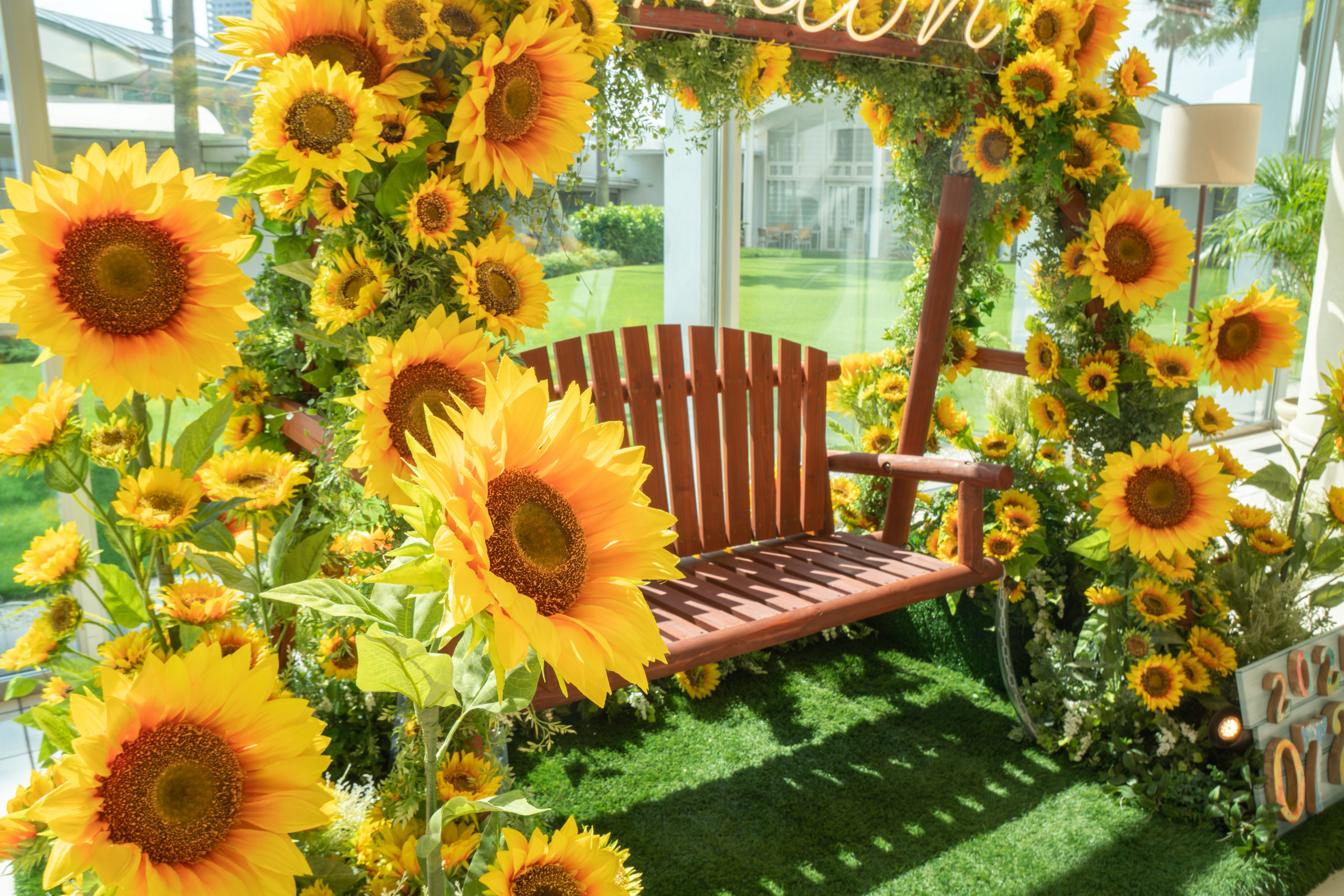 ひまわりをふんだんに使用したフォトスポットを設置。