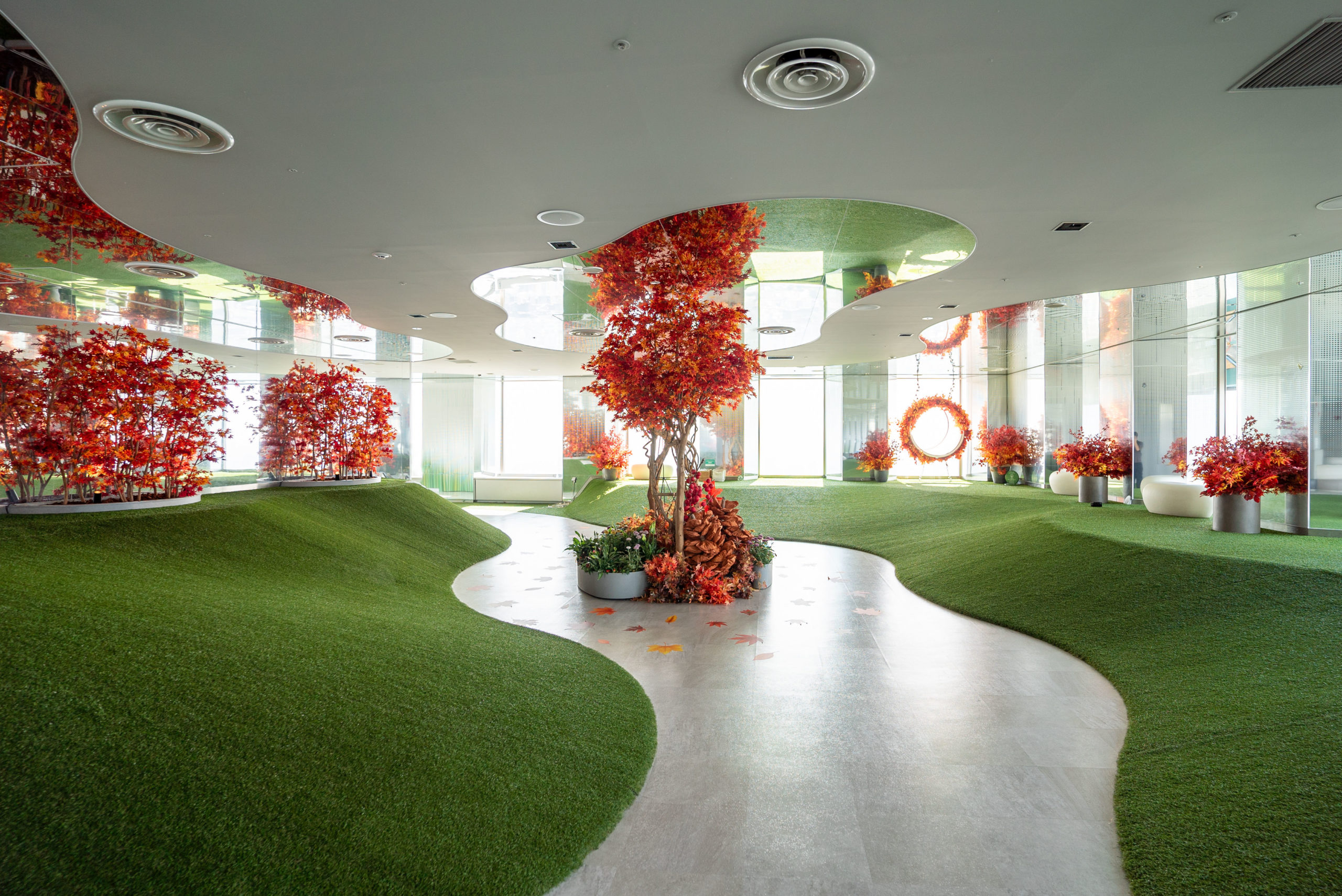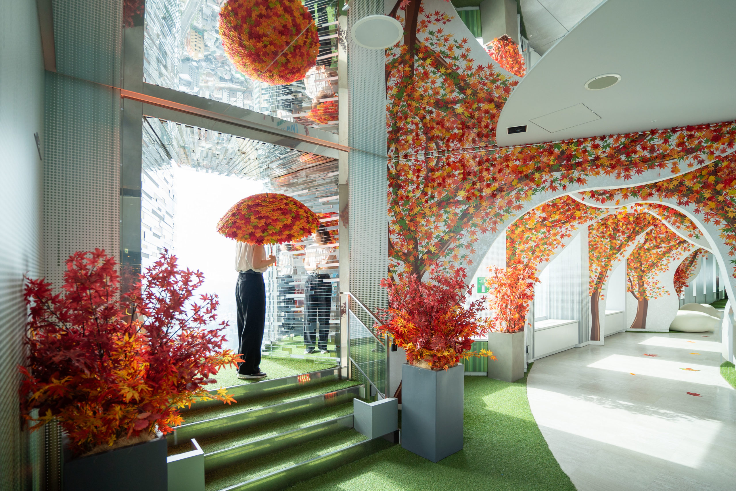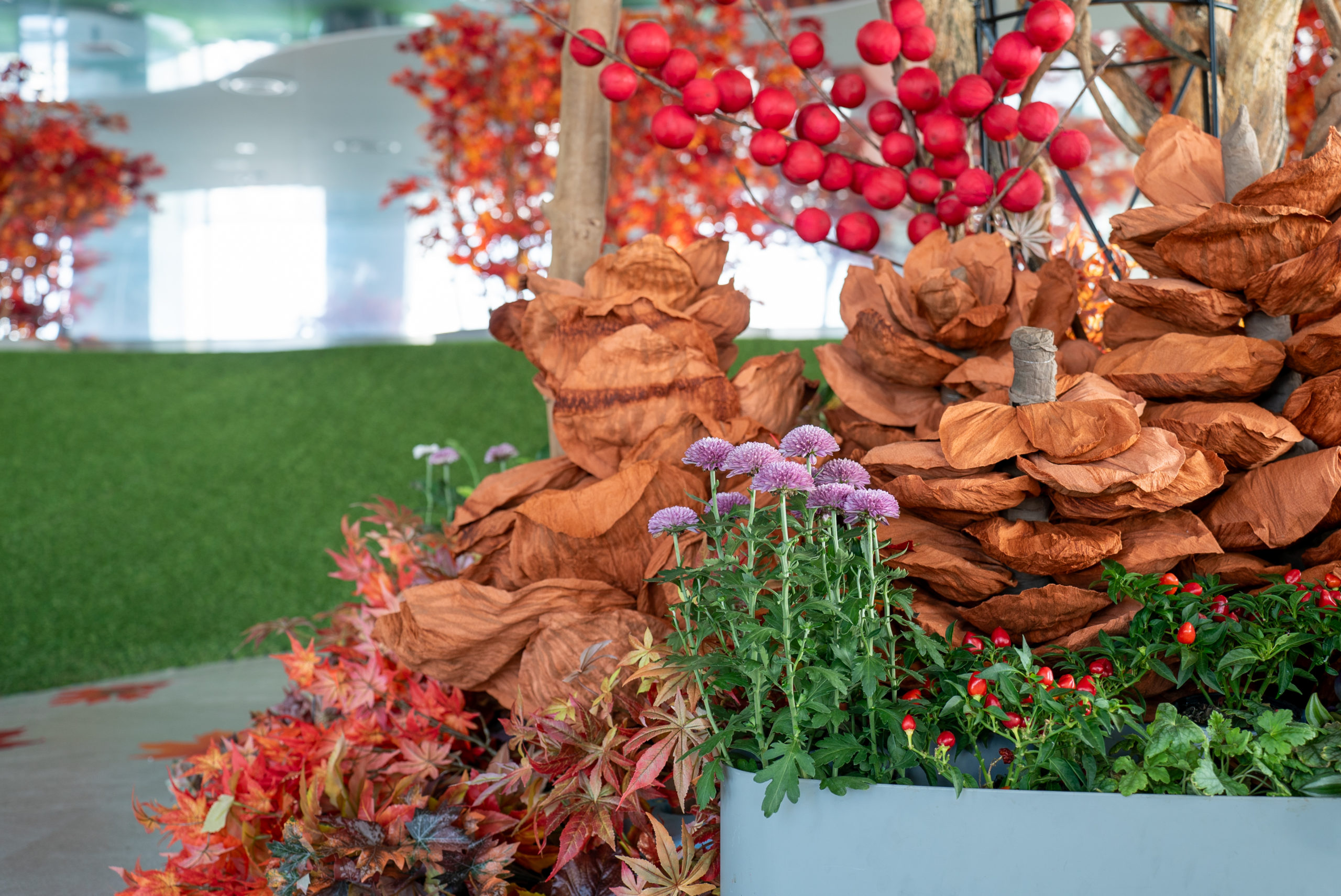 てんぼうの丘を中心に館内が紅葉の装飾で彩られ、一足早く紅葉を楽しむことができます。